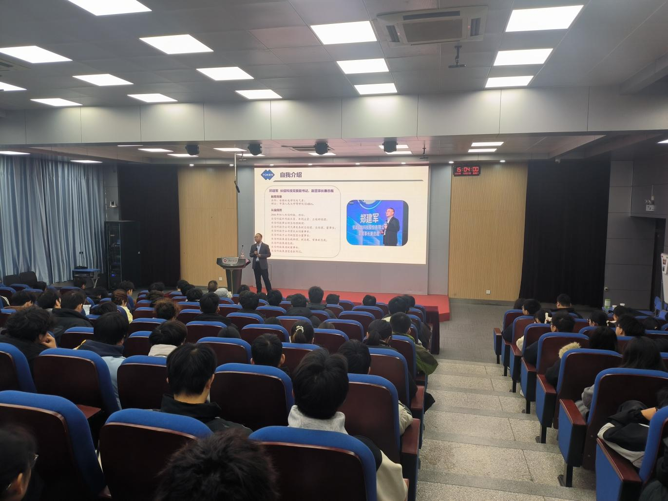 郑建军分享了自己从校园走向职场的成长轨迹。他回顾了在安徽工程大学的求学时光,坦言正是在校期间打下的扎实专业基础,为后续职业发展筑牢了根基。结合其在芜湖长信科技股份有限公司多年的拼搏经历,他勉励学弟学妹们要珍惜在校学习机会,聚焦专业核心知识,锤炼过硬专业技能,同时要树立远大理想,主动将个人发展融入国家战略和行业需求,在时代浪潮中勇担重任,以专业能力赋能社会发展。