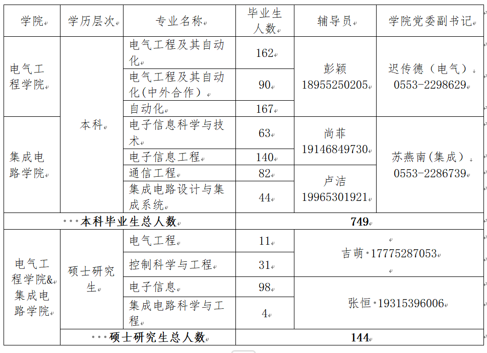 感谢各单位长期以来对安徽工程大学电气工程学院和集成电路学院毕业生就业工作的大力支持!2026年电气工程学院共有电气工程及其自动化、电气工程及其自动化(中外合作)、自动化3个专业本科生毕业生420名;2026年集成电路学院共有电子信息科学与技术、电子信息工程、通信工程、集成电路设计与集成系统4个专业本科生毕业生329名。此外,两个学院共有电子信息、电气工程、集成电路科学与工程、控制科学与工程4个专业硕士研究生144名。现诚挚邀请各用人单位来学院广纳贤才!