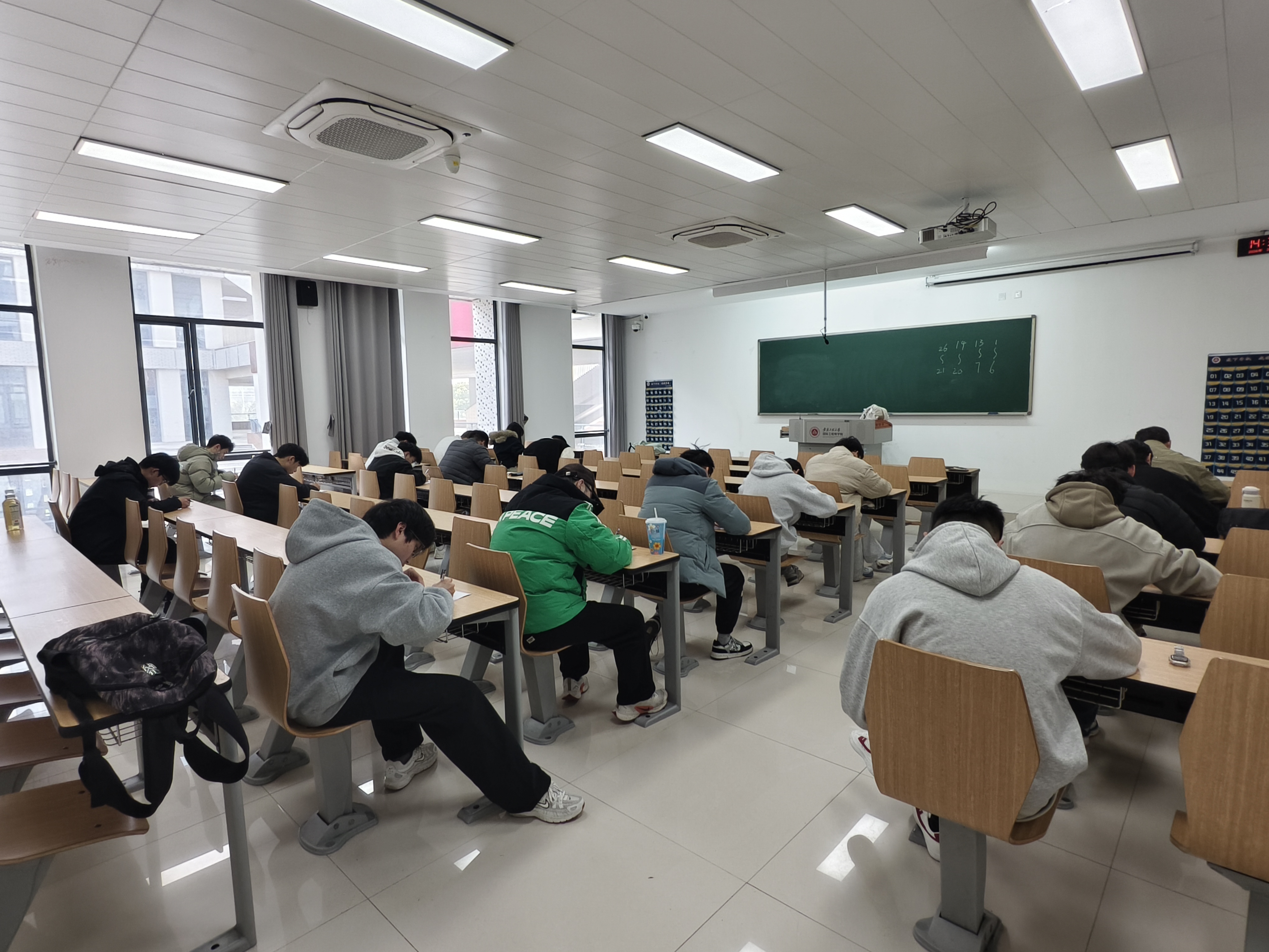 考风严明,展现优良学风风貌。模考当天,学习中心气氛紧张而专注。考场内纪律严明,同学们自觉遵守考场规定,沉着应对每一道难题。稿纸上密密麻麻的演算步骤,展现了学子们扎实的知识功底和迎难而上的精神面貌,也成为学院优良学风建设的生动缩影。