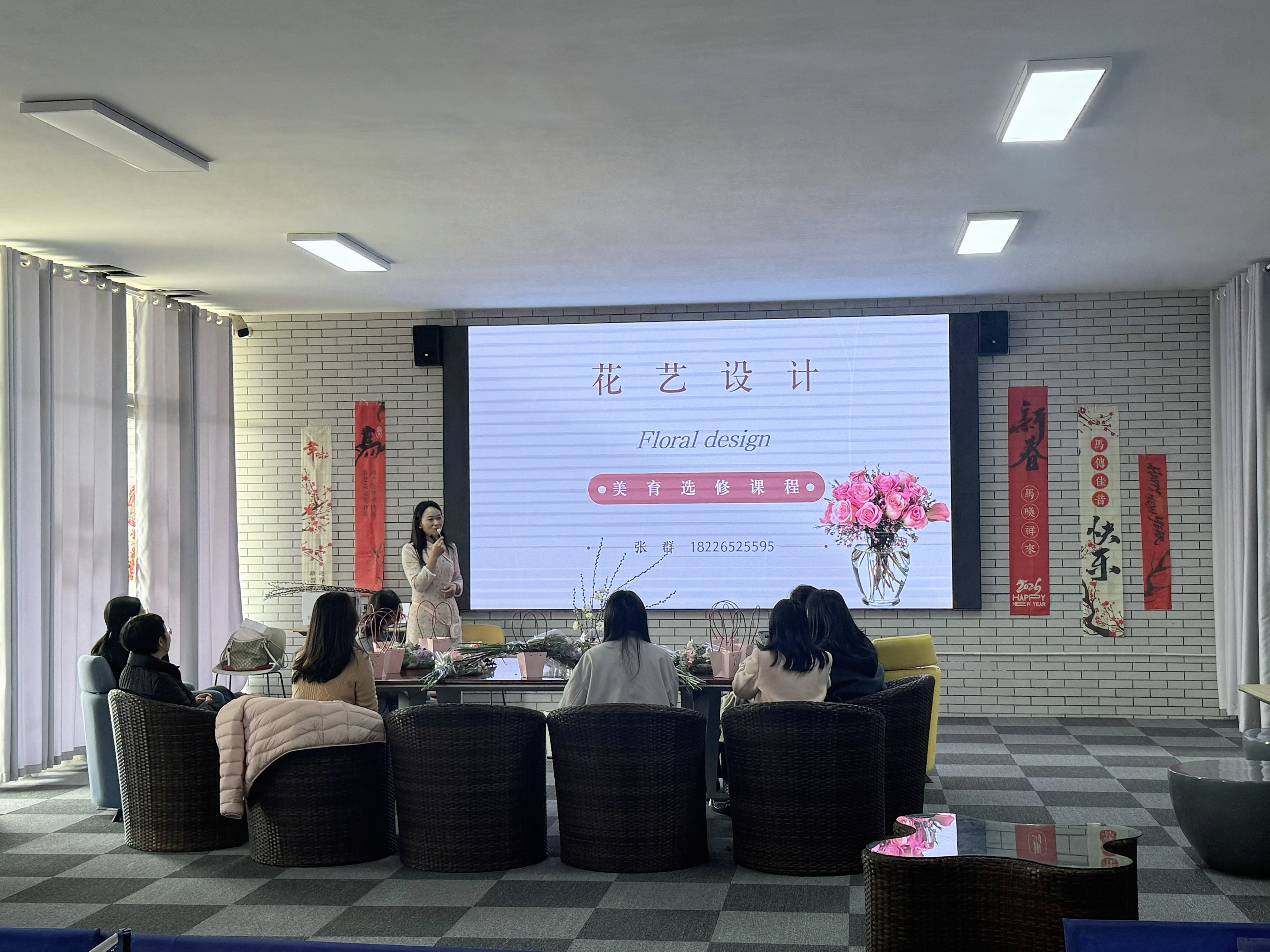 理论引路,探寻插花艺术之美。“插花不仅是一门技术,更是一种心境……”活动伊始,特邀专业花艺教师为大家带来了一场生动的美学沙龙。从插花的历史渊源到东西方流派的审美差异,从色彩搭配的视觉原理到高低错落的构图逻辑,老师结合经典案例娓娓道来。枯燥的美学理论在生动的讲解中变得触手可及,让教职工们深刻领略到了花艺背后的文化内涵,也为接下来的创作激发了灵感。