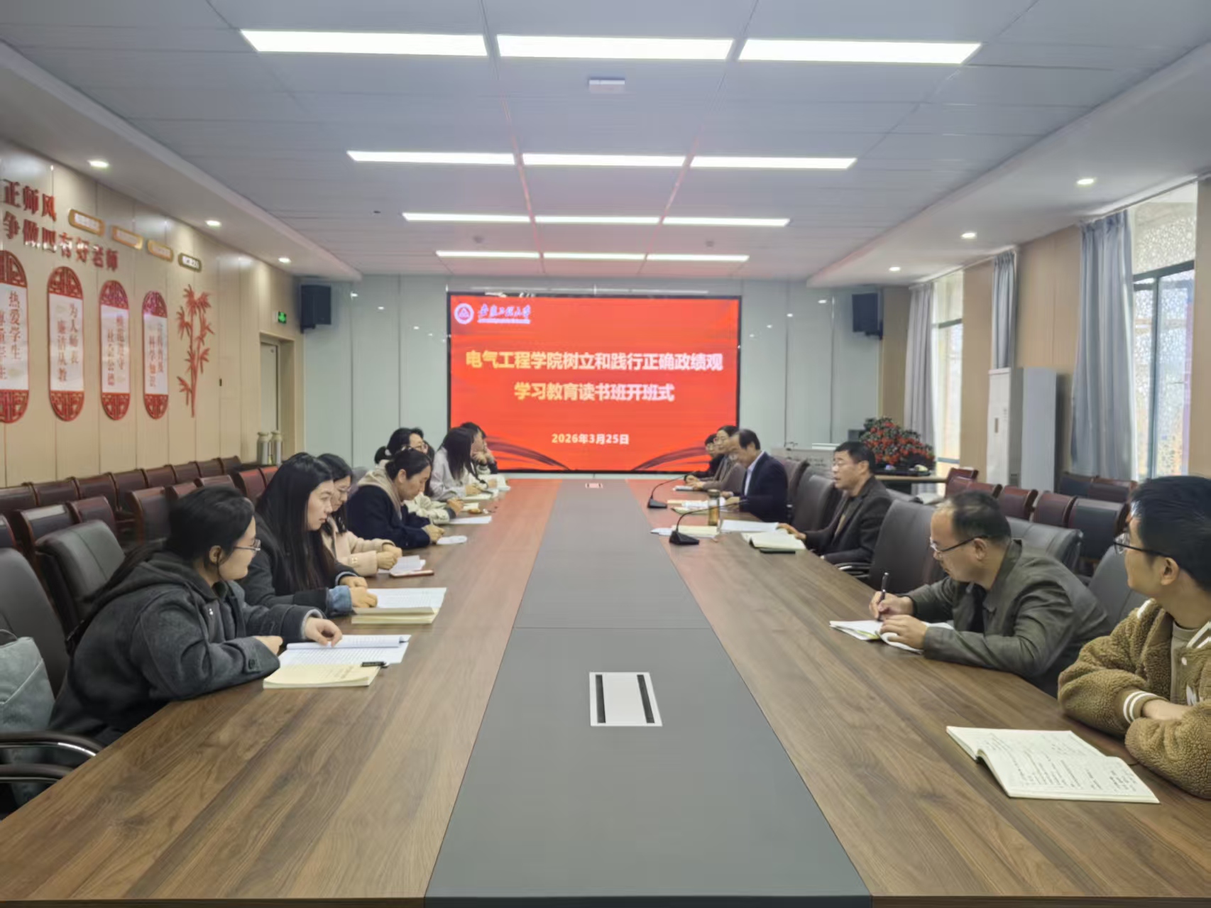 3月25日下午,电气工程学院在国际工程师学院校区龙胜楼206会议室举办树立和践行正确政绩观学习教育读书班开班式暨党委理论学习中心组学习(扩大)会。学院党委班子成员和支部书记参加,会前随机抽点部分党员干部列席会议。学院党委书记张春主持开班式。