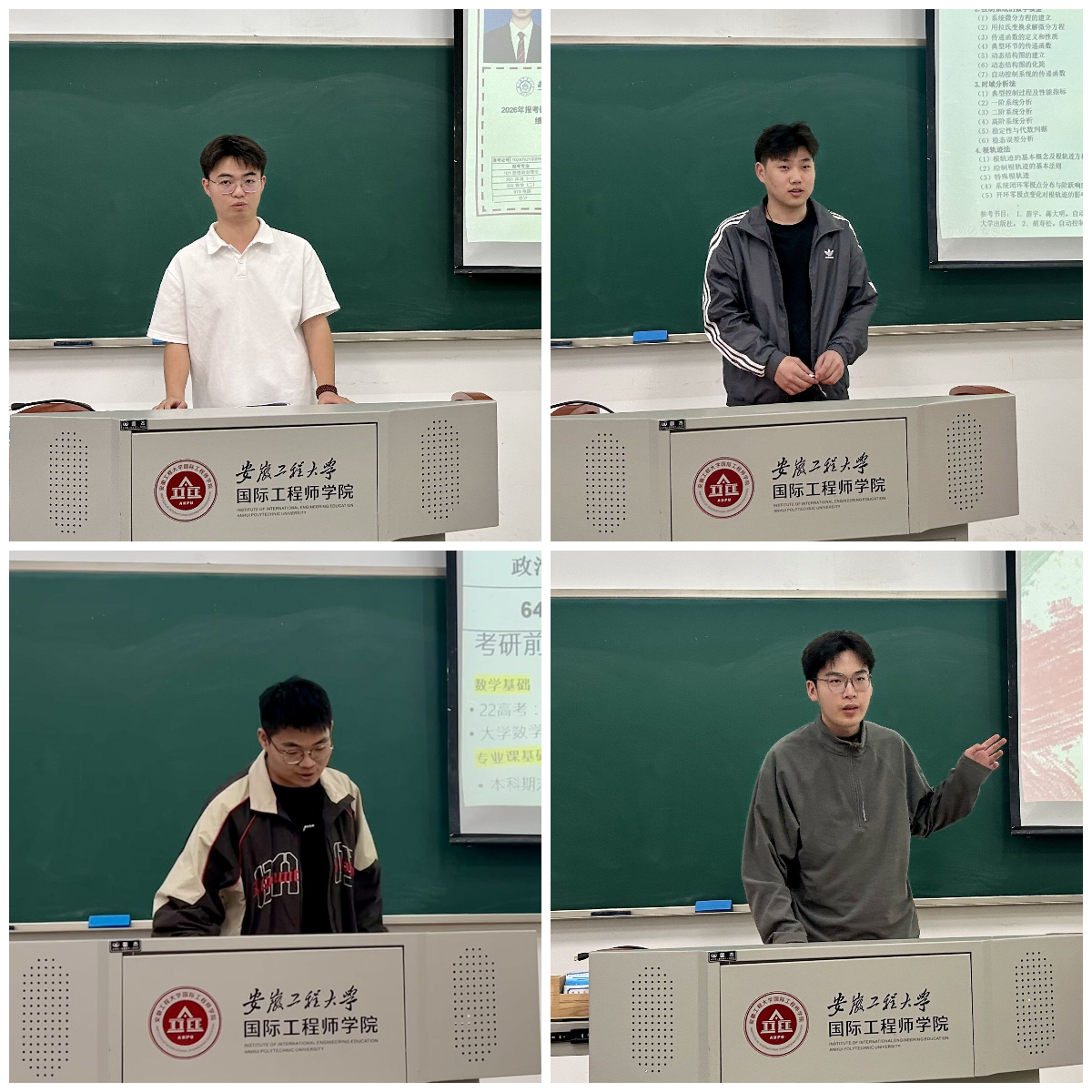 活动伊始,邱意敏介绍了2026年智能控制协会的考研整体情况。随后,四位考取知名院校的优秀学子——杨烨伟、王永恒、王陈、杨磊结合自身经历,围绕时间统筹、心理调适、专业课高效学习策略以及学科竞赛对考研的助推作用等方面作了细致分享,以真实成长轨迹勉励学弟学妹,生动诠释了“薪火相传”的朋辈互助精神。在互动交流环节,分享人们耐心解答了院校选择、科研竞赛与复习节奏的协调、冲刺阶段瓶颈突破等问题,并给出了针对性建议。活动尾声,邱意敏勉励同学们科学制定学习安排,将“迎难而上、笃学求真”的治学精神贯穿学业始终。她表示,无论未来深造还是就业,青年学子都应将个人成长融入国家发展大局,以实干担当为中国式现代化建设贡献青春智慧。与会同学一致认为,此次分享会内容充实,既提供了备考路上的方法指引,更增添了前行的信心与力量。